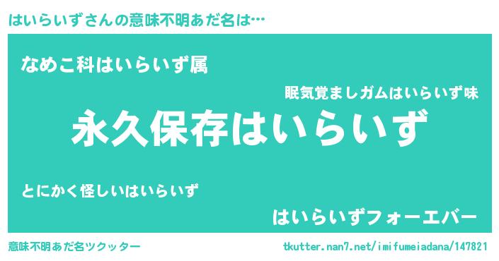 | 胡散臭い通販商品みたいなあだ名 | 『来世でも幸せになれる水素水…その名も「はいらいず」』 |