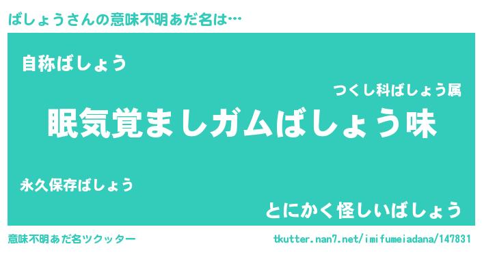 | ヘコむあだ名 | 『ばしぷりん』『ばしょう(苦笑)』 |
