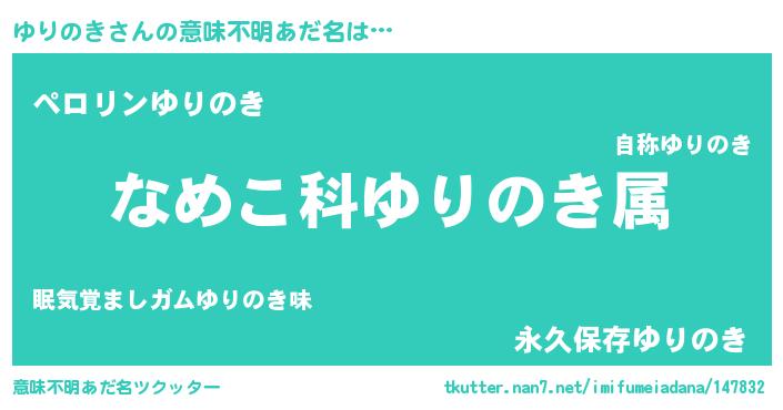 | ヘコむあだ名 | 『ゆりふぇ~』『ゆりのき(小並感)』 |