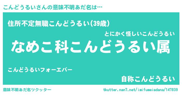 | 男性向けラノベタイトル風あだ名 | 『転生したらこんどうるいだった件』 |