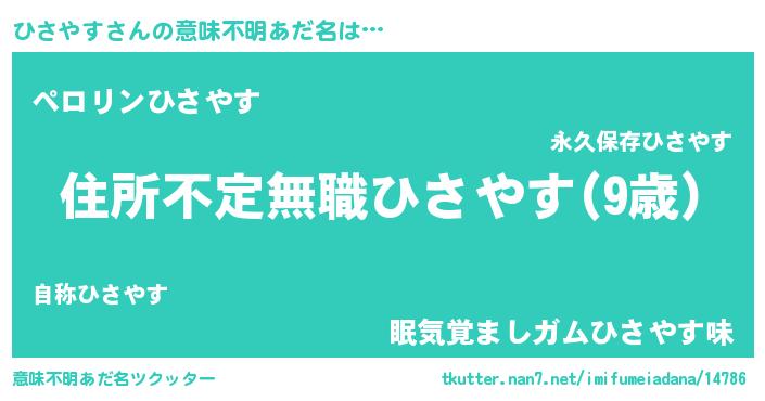 | ヘコむあだ名 | 『ひさふぇ~』『ひさやす(爆)』 |