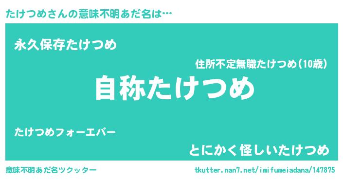 | ポケモン風あだ名 | 『メロタッケ』『タケセウス』 |