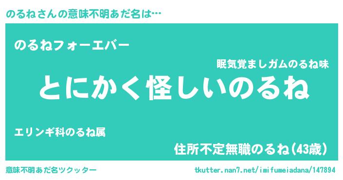 | 男性向けラノベタイトル風あだ名 | 『のるねの嫁は女の子じゃないと思った?』 |