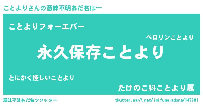 | ヒーロー風カッコイイあだ名 | 『ネオコトヨリ』『ウルトラことよりマン』 |