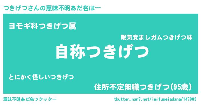 | 男性向けラノベタイトル風あだ名 | 『Re:つきげつから始める異世界生活』 |