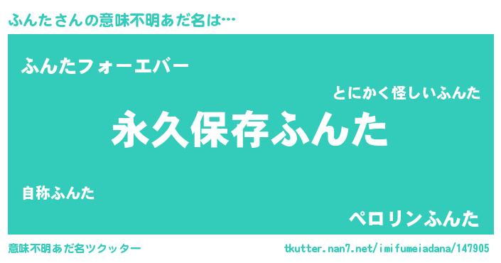 | 男性向けラノベタイトル風あだ名 | 『ふんたという概念が存在しない退屈な世界 』 |