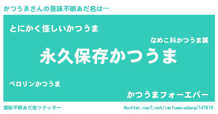 | 胡散臭い通販商品みたいなあだ名 | 『絶対に幸福をもたらす水素水…その名も「かつうま」』 |