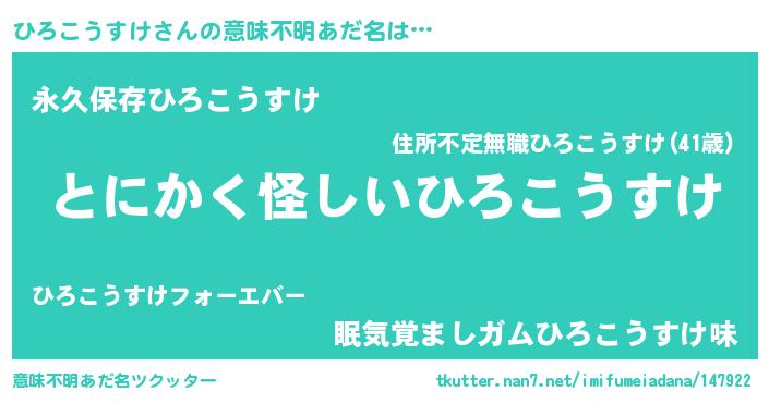 | 男性向けラノベタイトル風あだ名 | 『ダンジョンにひろこうすけを求めるのは間違っているだろうか』 |