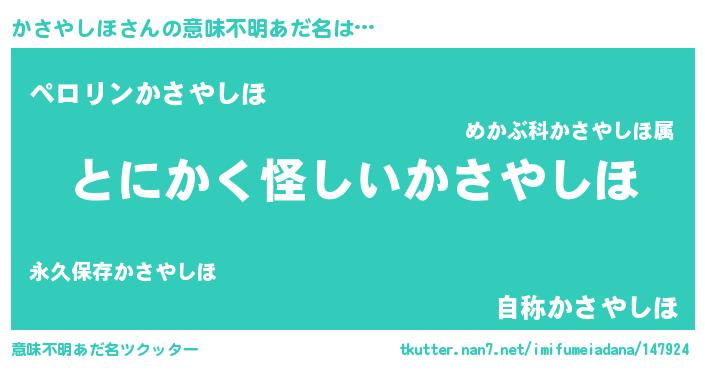 | ポケモン風あだ名 | 『ヒカサヤシホ』『メロカッサ』 |