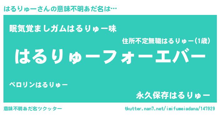 | 胡散臭い通販商品みたいなあだ名 | 『運命の人と巡り会える高級そうな壺…その名も「はるりゅー」』 |