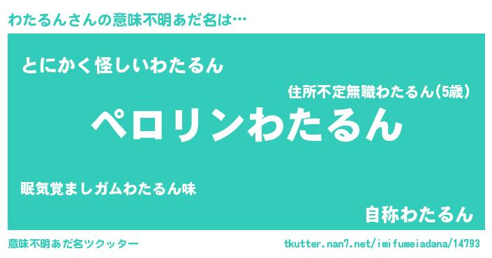 | 男性向けラノベタイトル風あだ名 | 『ワタルンアートオンライン』 |