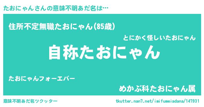 | 欧米人風あだ名 | 『アンジェラ・たおにゃん』 |