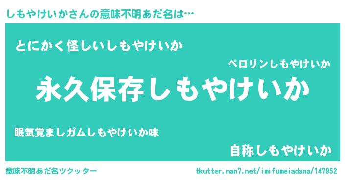 | ヘコむあだ名 | 『しもやけいか(震え声)』『しもぷりん』 |