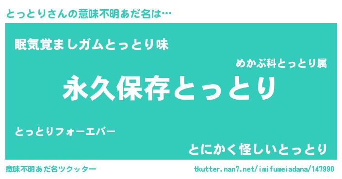 | ヘコむあだ名 | 『とっとり(小並感)』『とっ太郎』 |