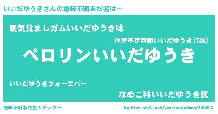 | 男性向けラノベタイトル風あだ名 | 『イイダユウキアートオンライン』 |