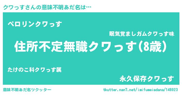 | 胡散臭い通販商品みたいなあだ名 | 『あなたにだけ特別に提供する100年もののヴィンテージワイン…その名も「クワっす」』 |