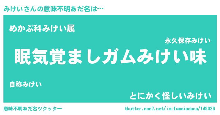 | ヘコむあだ名 | 『みけぷりん』『みけい(遠い目)』 |