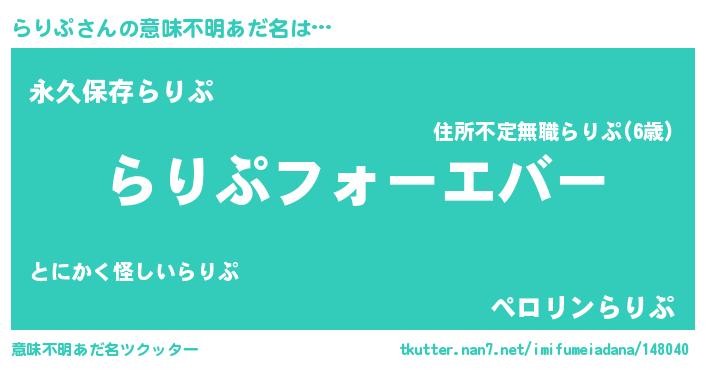 | ヒーロー風カッコイイあだ名 | 『ウルトラらりぷマン』『ネオラリプ』 |