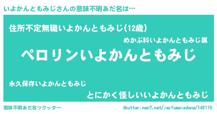 | 胡散臭い通販商品みたいなあだ名 | 『必ず成功する霊験あらたかなお札…その名も「いよかんともみじ」』 |