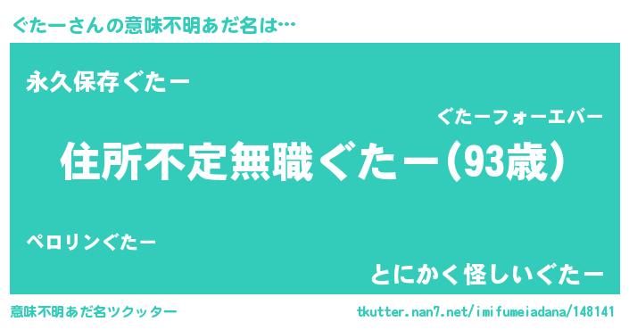 | 男性向けラノベタイトル風あだ名 | 『魔弾の王とぐたー』『ぐたーの憂鬱』 |