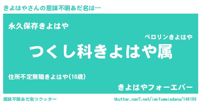 | 男性向けラノベタイトル風あだ名 | 『うちのきよはやが世界を掌握している!』 |