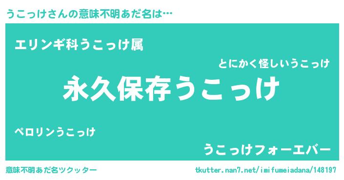 | 男性向けラノベタイトル風あだ名 | 『うこっけという概念が存在しない退屈な世界 』 |