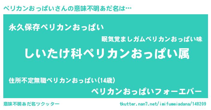 | ヒーロー風カッコイイあだ名 | 『ネオペリカンオッパイ』『仮面ペリダー』 |