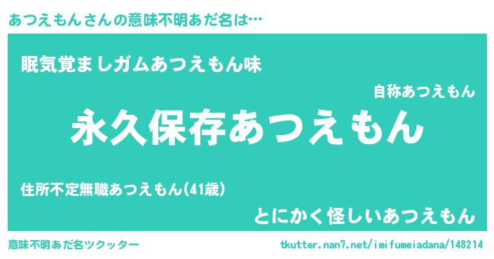 | ヘコむあだ名 | 『あつえもん(小並感)』『あつ太郎』 |
