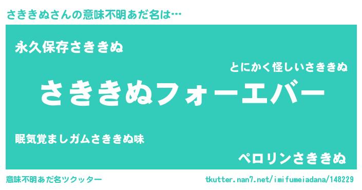 | 男性向けラノベタイトル風あだ名 | 『緋弾のサキキヌ』 |