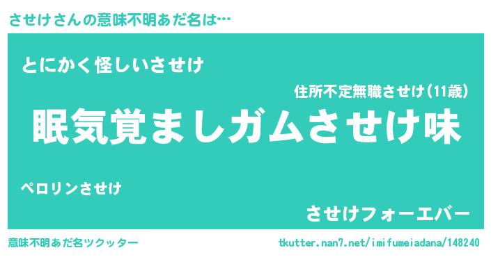 | ヒーロー風カッコイイあだ名 | 『正義の使者させけ』『炎刃騎士サセ』 |