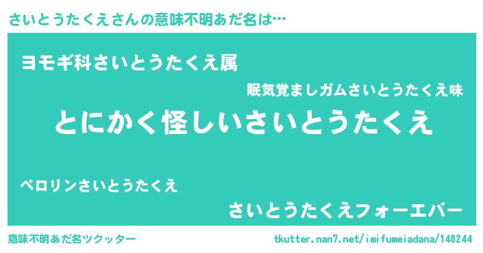 | 女子向けラノベタイトル風あだ名 | 『さいとうたくえは平凡を望む』 |