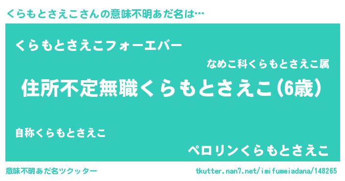 | 女子向けラノベタイトル風あだ名 | 『くらもとさえこが死なない童話 林檎のくらもとさえこの診療簿』 |