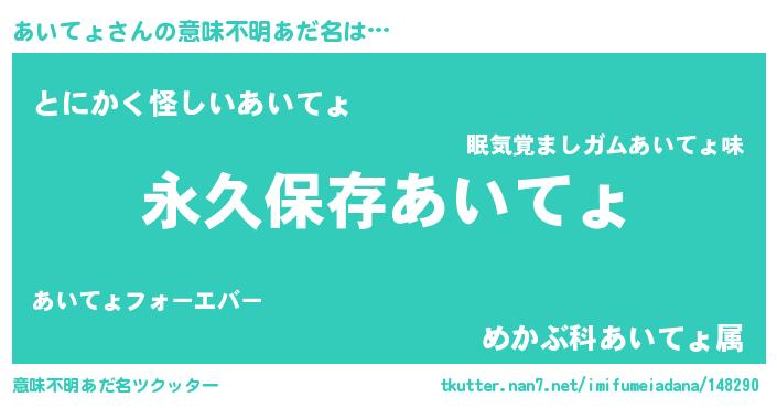 | 男性向けラノベタイトル風あだ名 | 『あいてょという概念が存在しない退屈な世界 』 |