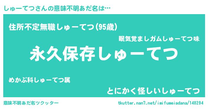 | 胡散臭い通販商品みたいなあだ名 | 『来世でも幸せになれる健康食品…その名も「しゅーてつ」』 |