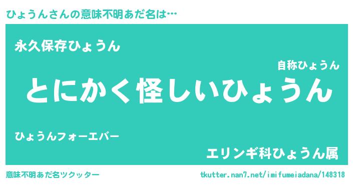 | 胡散臭い通販商品みたいなあだ名 | 『信頼と実績のサプリメント…その名も「ひょうん」』 |