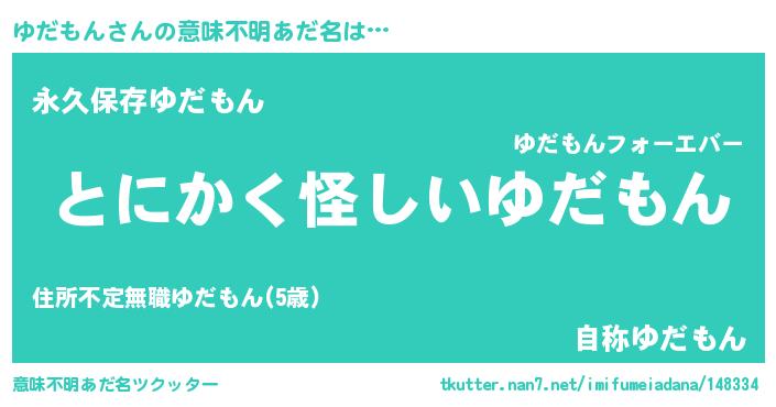 | 男性向けラノベタイトル風あだ名 | 『ゆだもんの嫁は女の子じゃないと思った?』 |
