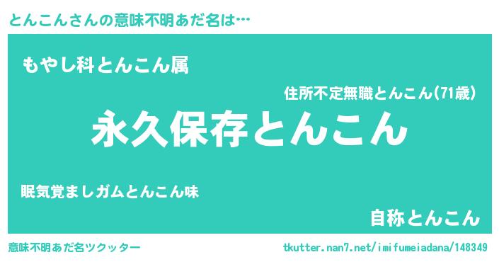 | 胡散臭い通販商品みたいなあだ名 | 『絶対に幸福をもたらす水素水…その名も「とんこん」』 |
