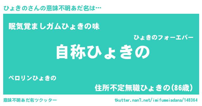 | 男性向けラノベタイトル風あだ名 | 『緋弾のヒョキノ』『魔弾の王とひょきの』 |