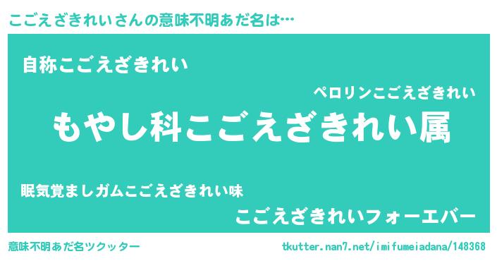 | ヘコむあだ名 | 『なまこ酢』『こごっふぃ~』 |