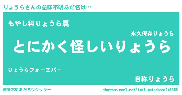 | 男性向けラノベタイトル風あだ名 | 『ダンジョンにりょうらを求めるのは間違っているだろうか』 |