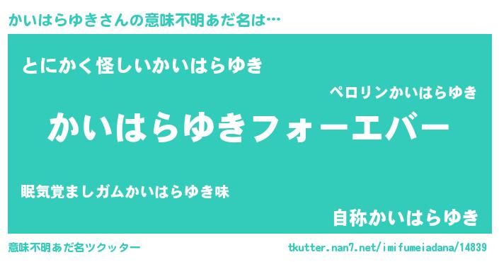 | 胡散臭い通販商品みたいなあだ名 | 『世界が平和になる高級そうな壺…その名も「かいはらゆき」』 |