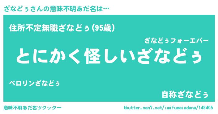 | ヘコむあだ名 | 『ざなっ子』『なまこ酢』『ざなもー』 |