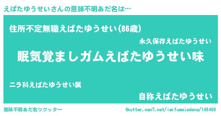 | ヘコむあだ名 | 『えばたゆうせい(遠い目)』『えばぷりん』 |