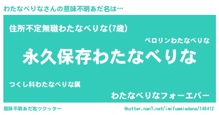 | 胡散臭い通販商品みたいなあだ名 | 『絶対に幸福をもたらす健康食品…その名も「わたなべりな」』 |