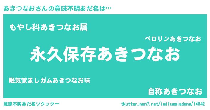 | 胡散臭い通販商品みたいなあだ名 | 『絶対に幸福をもたらす健康食品…その名も「あきつなお」』 |