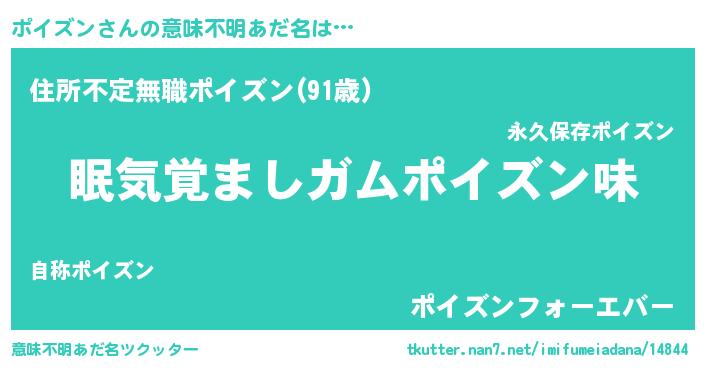 | 男性向けラノベタイトル風あだ名 | 『ポイズンに滅ぼされるだけの簡単なお仕事です』 |