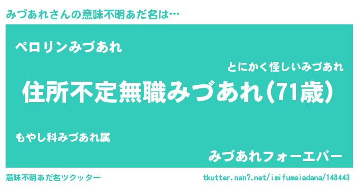 | 男性向けラノベタイトル風あだ名 | 『魔弾の王とみづあれ』『みづあれの憂鬱』 |