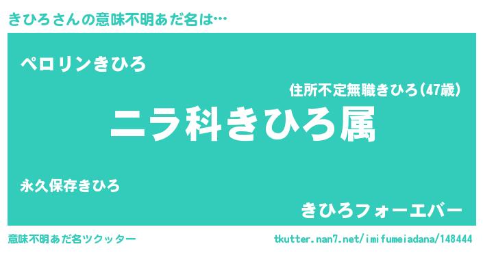 | 胡散臭い通販商品みたいなあだ名 | 『億万長者になれるブレスレット…その名も「きひろ」』 |
