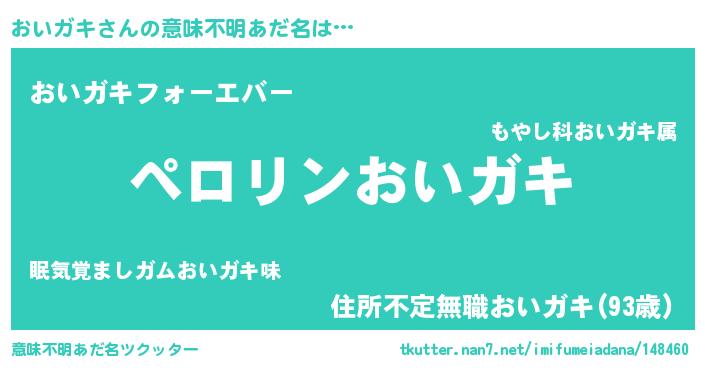 | 男性向けラノベタイトル風あだ名 | 『おいガキの憂鬱』『魔弾の王とおいガキ』 |
