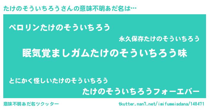 | 胡散臭い通販商品みたいなあだ名 | 『モンドセレクションを受賞した隕石のかけら…その名も「たけのそういちろう」』 |
